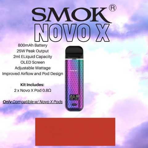There are two Smok Novo X pods. The first is the DC MTL 0.8ohm and the second is the Mesh 0.8ohm pod. The DC MTL is ideal for nic salts and the adjustable wattage keeps the vapor production to a reasonable level for such a low resistance coil design. The larger juice ports are actually quite useful when using thicker nic salts, such as the 70 percent VG formulas used by VGod. The Novo X definitely delivers great vapor and flavor. The pods are extremely long lasting. It is my Novo of choice but I recognize the merits of the Novo 2 and Novo 3.