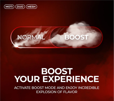 The MOTI DUO 9000 adopts MOTI Duo Mesh Coli Technology, Double Mesh Coils Double the Fun. When you turn on the Boost Mode, two mesh coils work together, embarking on a wild vaping journey. When not activating the Boost Mode, two mesh coils are used in turn, extending the lifespan of coils and keeping the consistent flavour.