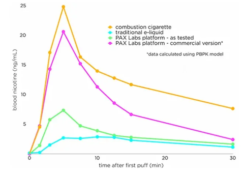 Under certain conditions (low temp vaping vs. burning the tobacco leaf), nicotine salts actually deliver an oomphier punch, driving up the peak concentration of nicotine in the blood.