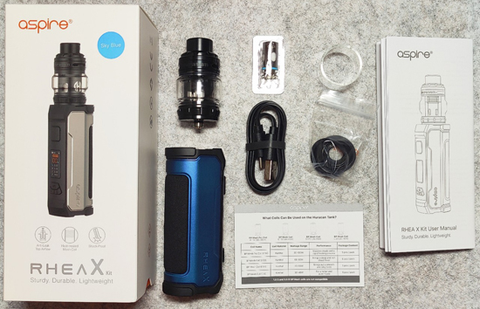 I was sent the Aspire Rhea X Kit in sample packaging, which includes: