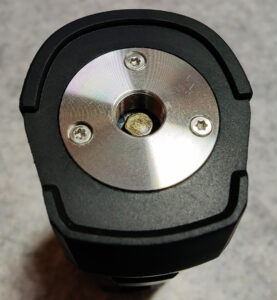 Starting from the top, the 510 plate is screwed on firmly with a contact that is spring-loaded. The external battery is installed through the bottom of the mod and via a vented battery cap that screws on and off. The cap threading is smooth, and the battery cap when screwed in is recessed into the rubberised mod base. And so, you will not have any stability or wobbling issues when the mod is upright. Battery polarities are also clearly marked inside the mod and that is always a pro in my book.