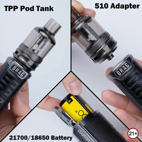 For me personally there is a bit too much branding going on with Drag X Plus on the leather, DRAG right above it on the frame, Voopoo and Gene chip on the side. Also, on top of the pod there is some more branding, ‘DESIGNED BY VOOPOO, and ‘ADAPT TPP COILS’ It would have been sufficient for me to just have DRAG on the leather.